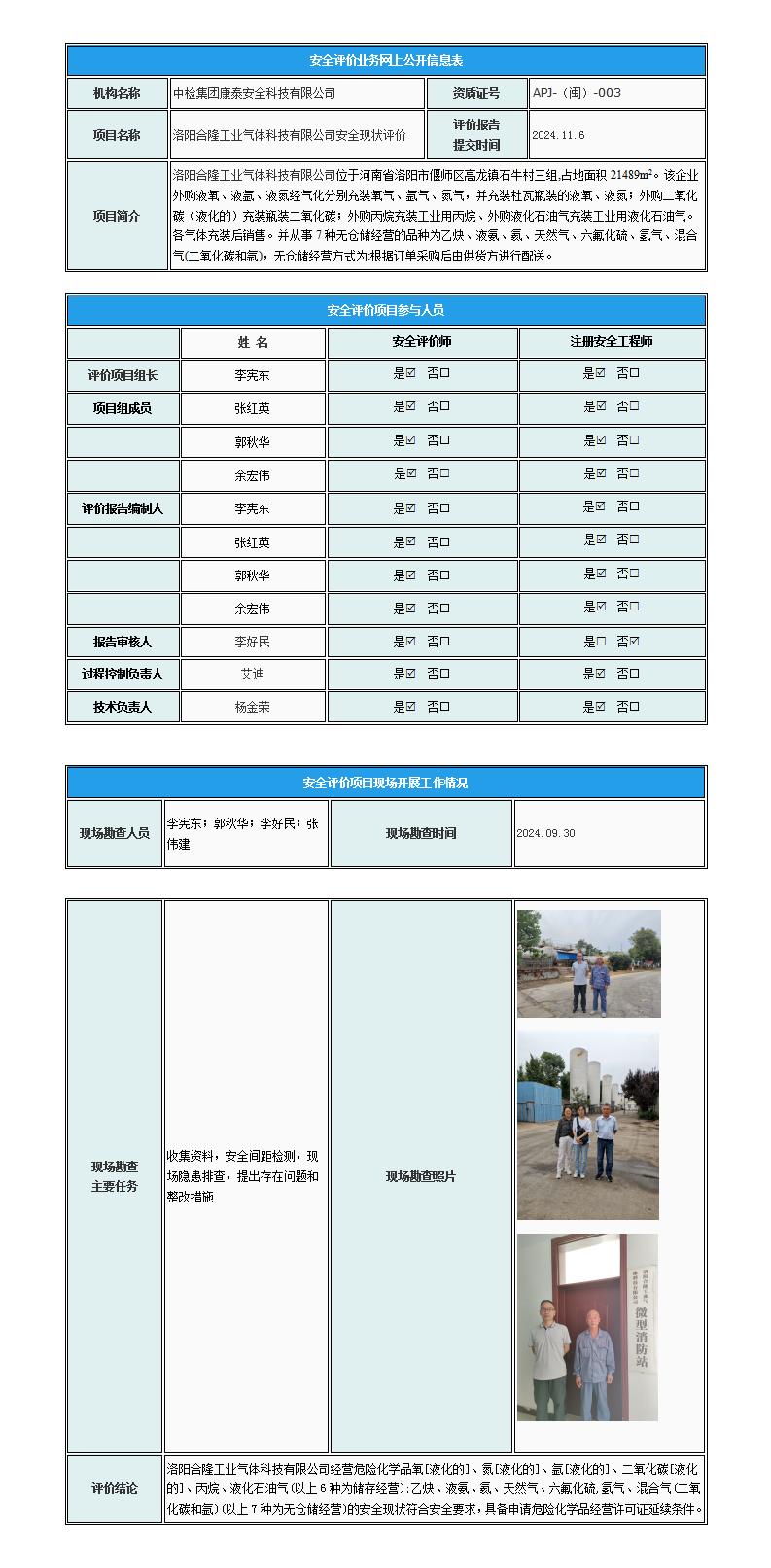 洛阳合隆工业气体科技有限公司安全现状评价
