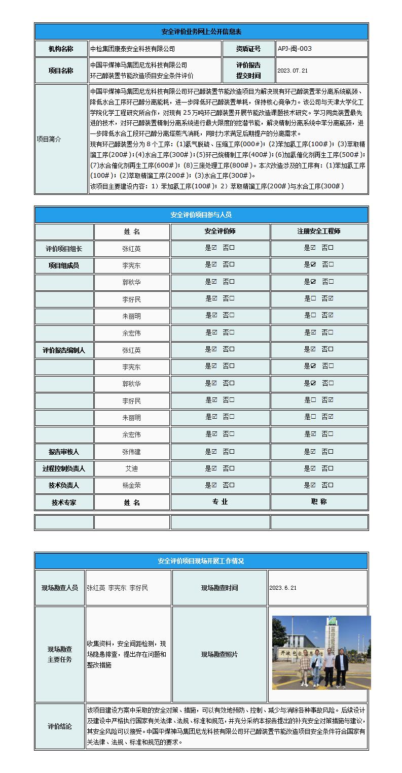中国平煤神马集团尼龙科技有限公司环己醇装置节能改造项目安全条件评价