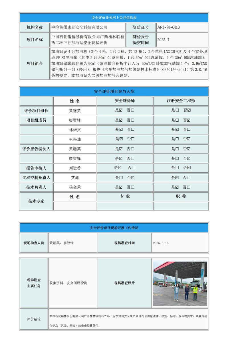 中国石化销售股份有限公司广西桂林临桂西二环下行加油站安全现状评价