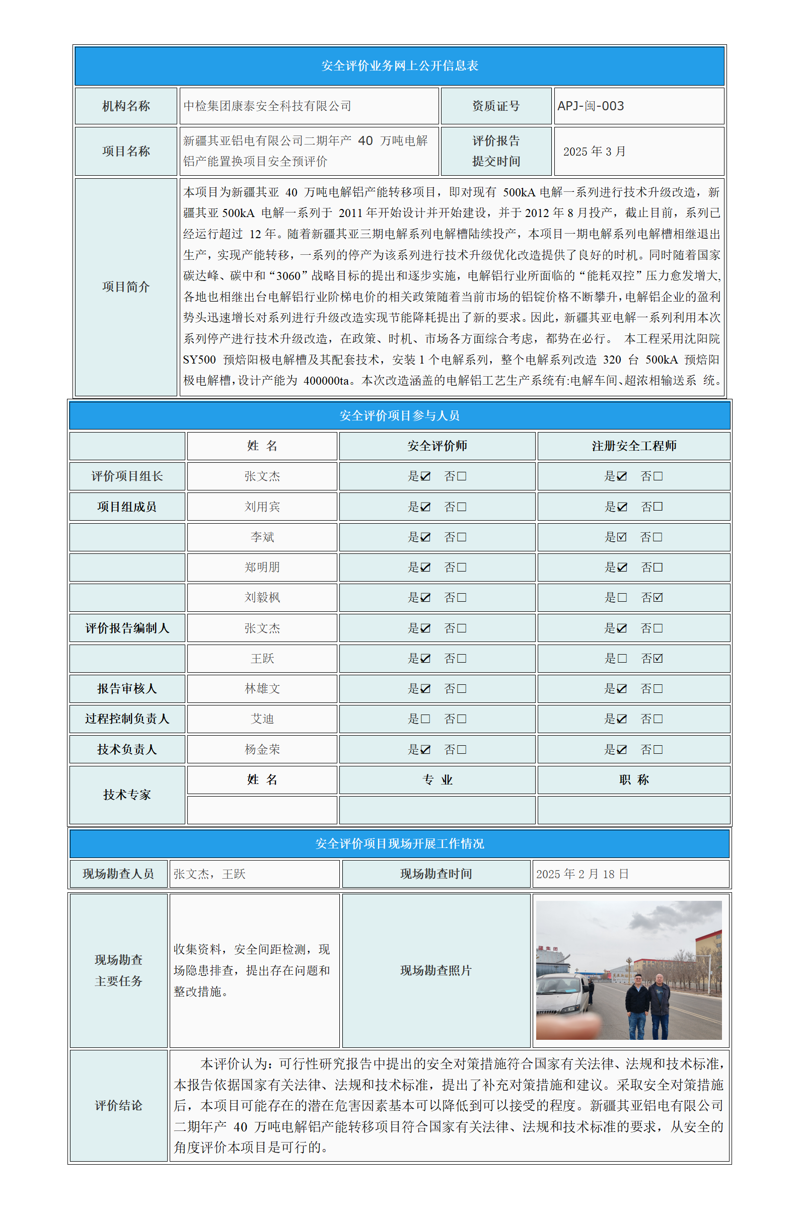 新疆其亚铝电有限公司二期年产 40 万吨电解铝产能置换项目安全预评价