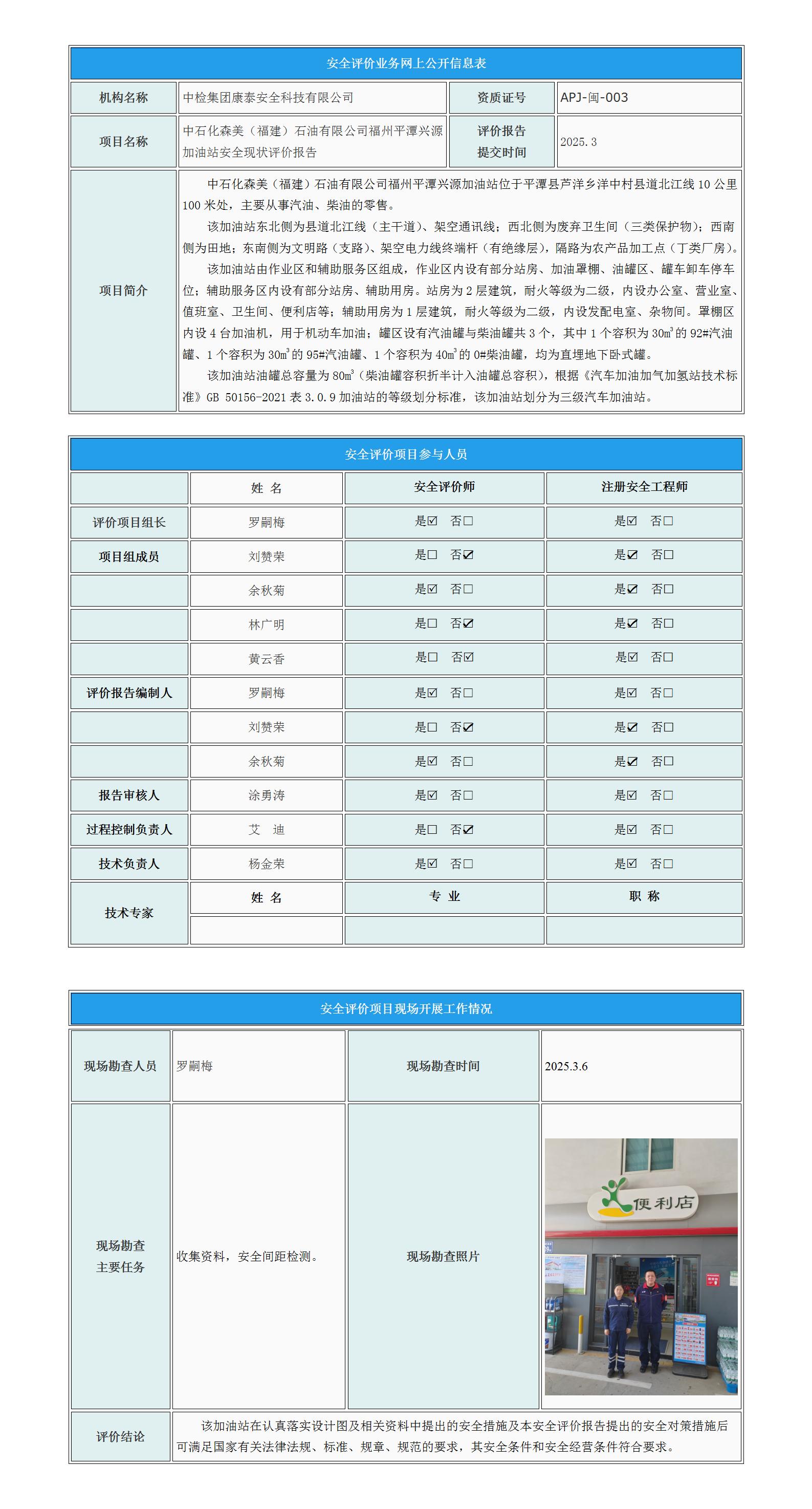 中石化森美(福建)石油有限公司福州平潭兴源加油站安全现状评价报告