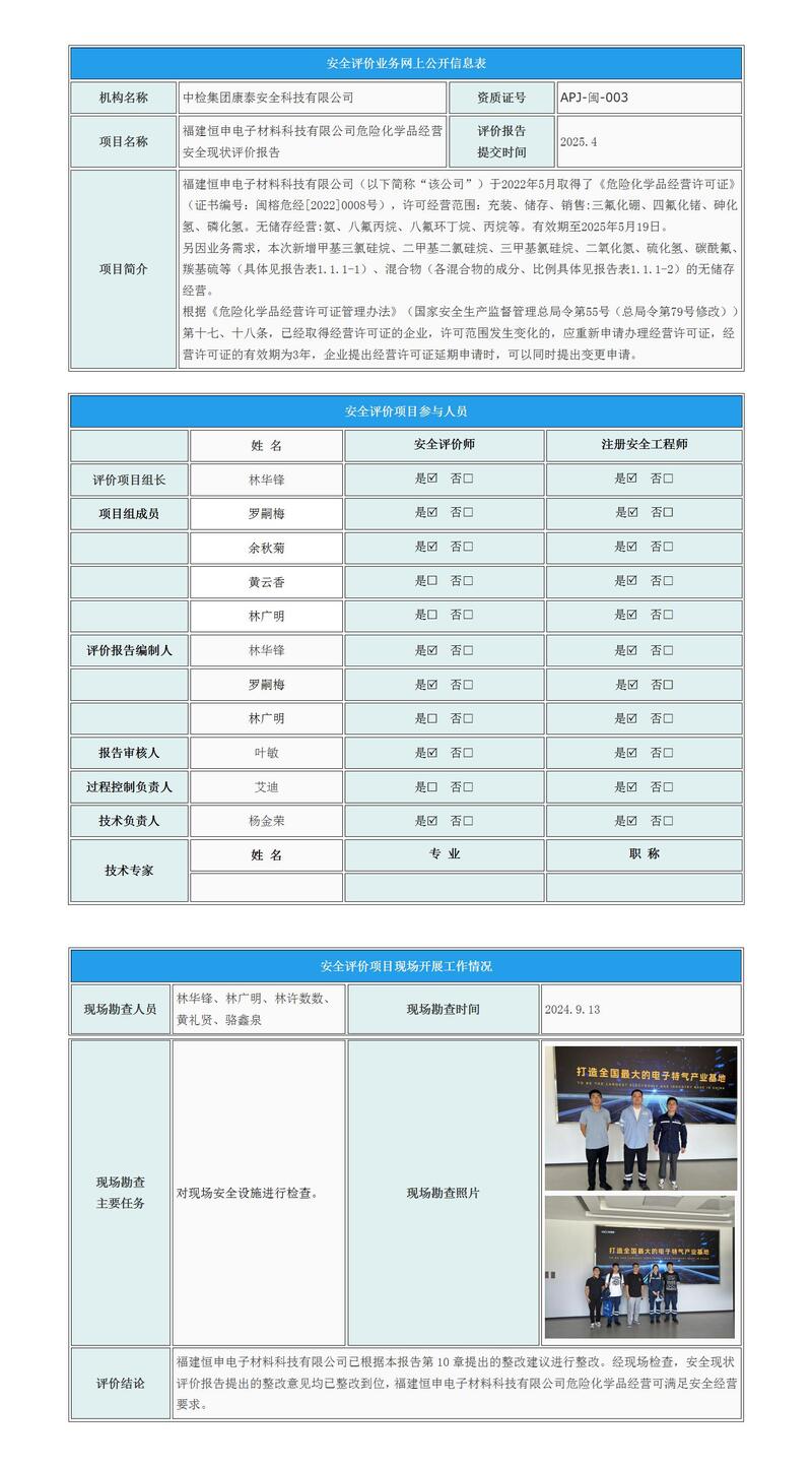 福建恒申电子材料科技有限公司危险化学品经营安全现状评价报告