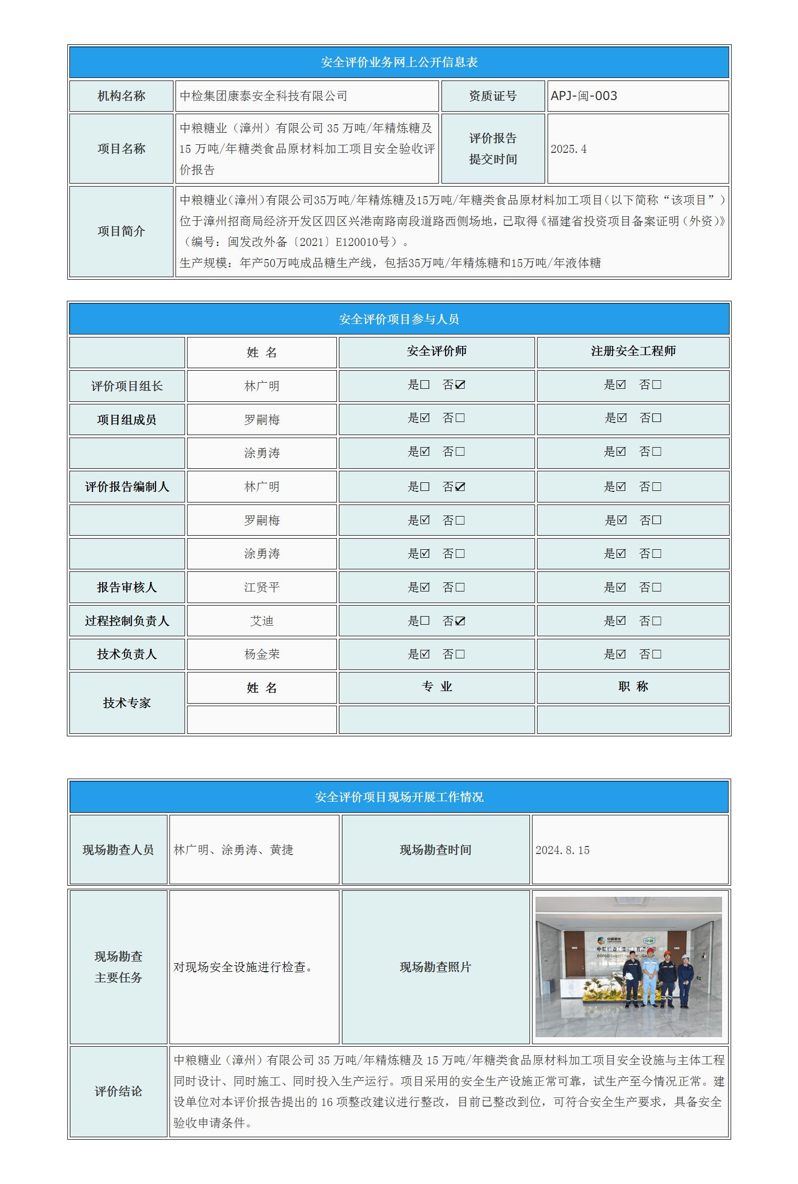 中粮糖业(漳州)有限公司35万吨/年精炼糖及15万吨/年糖类食品原材料加工项目安全验收评价报告