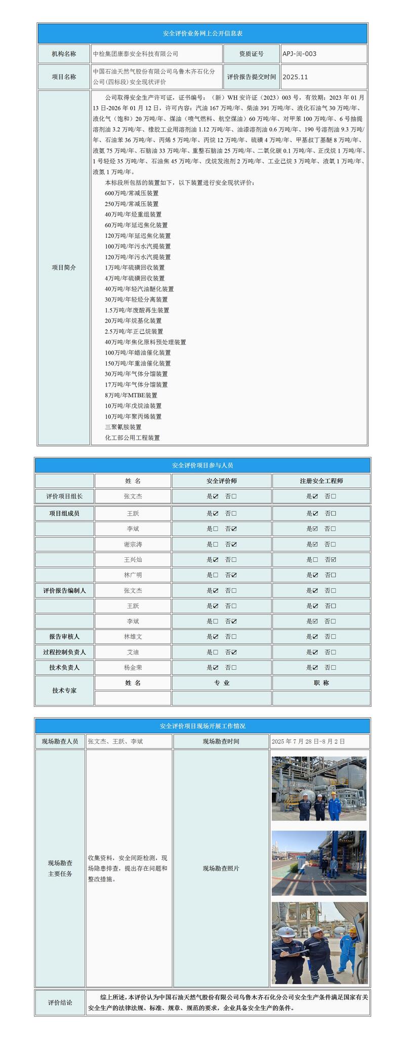 中国石油天然气股份有限公司乌鲁木齐石化分公司(四标段)安全现状评价