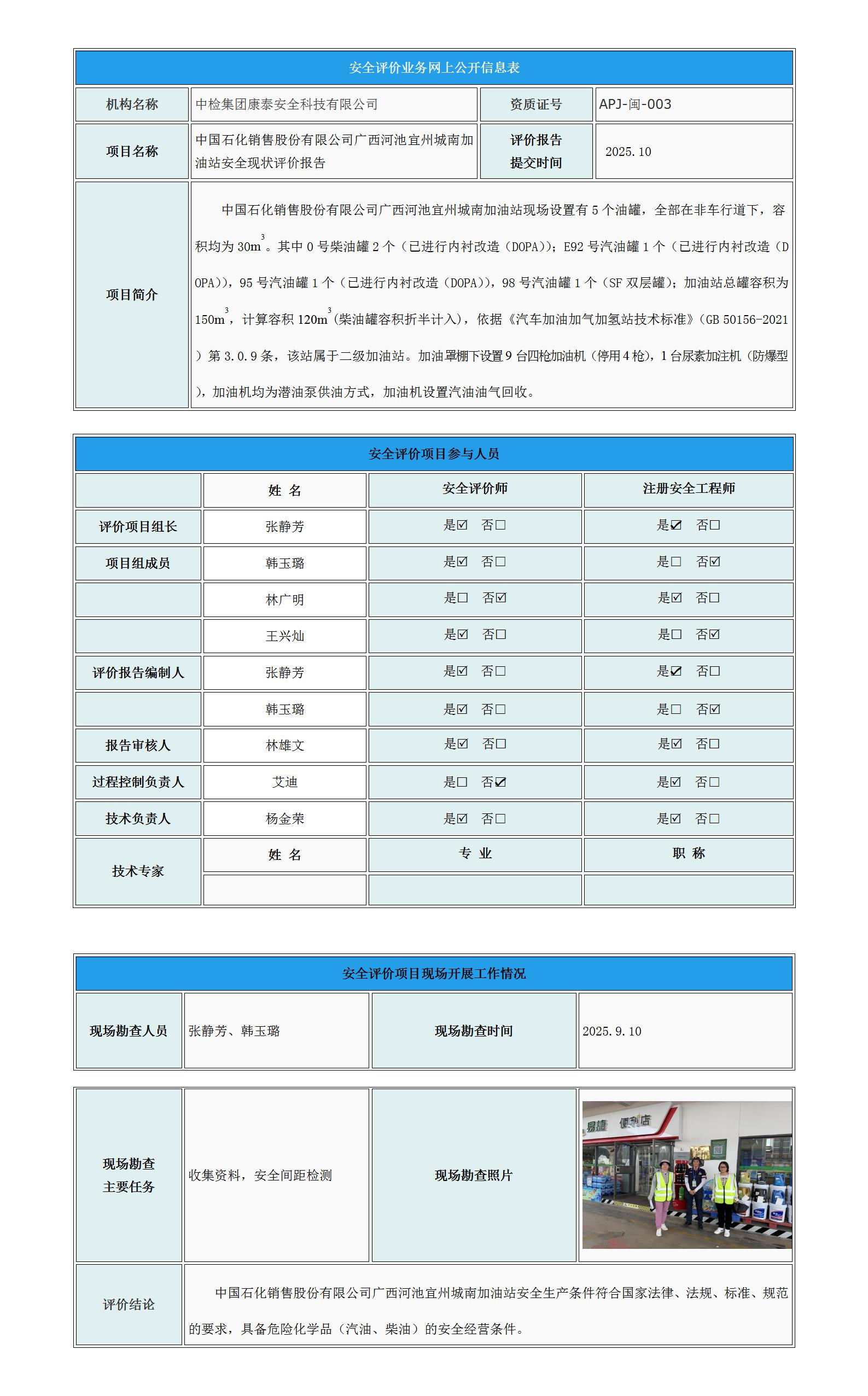 中国石化销售股份有限公司广西河池宜州城南加油站安全现状评价报告