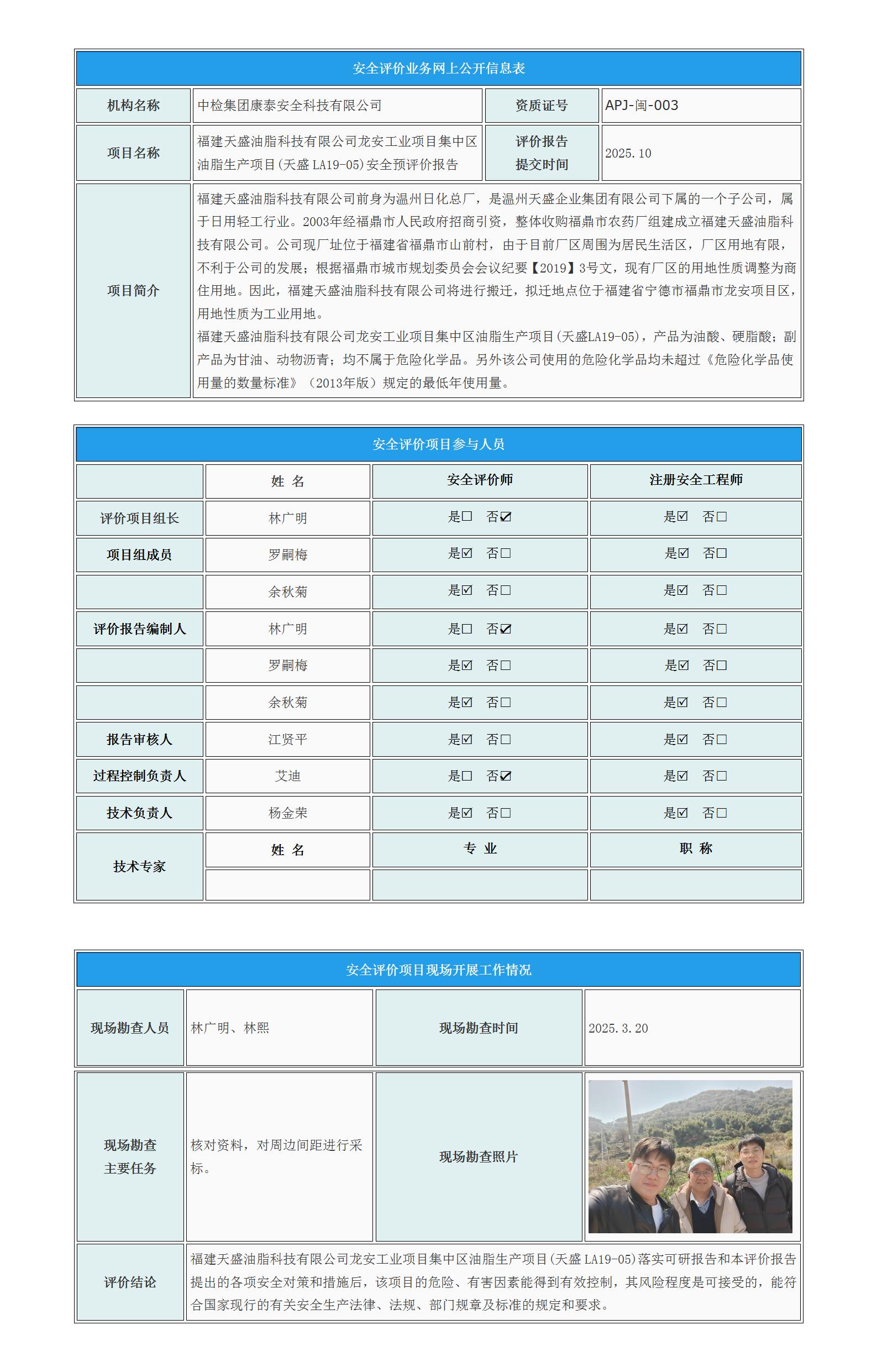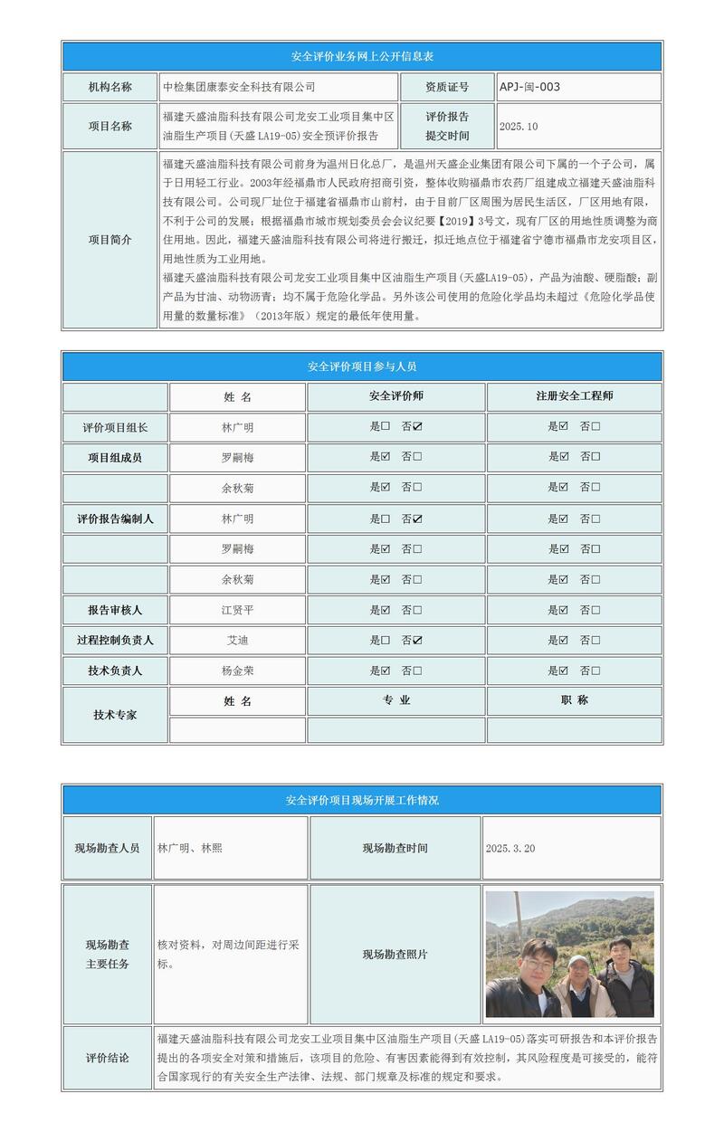 福建天盛油脂科技有限公司龙安工业项目集中区油脂生产项目(天盛LA19-05)安全预评价报告