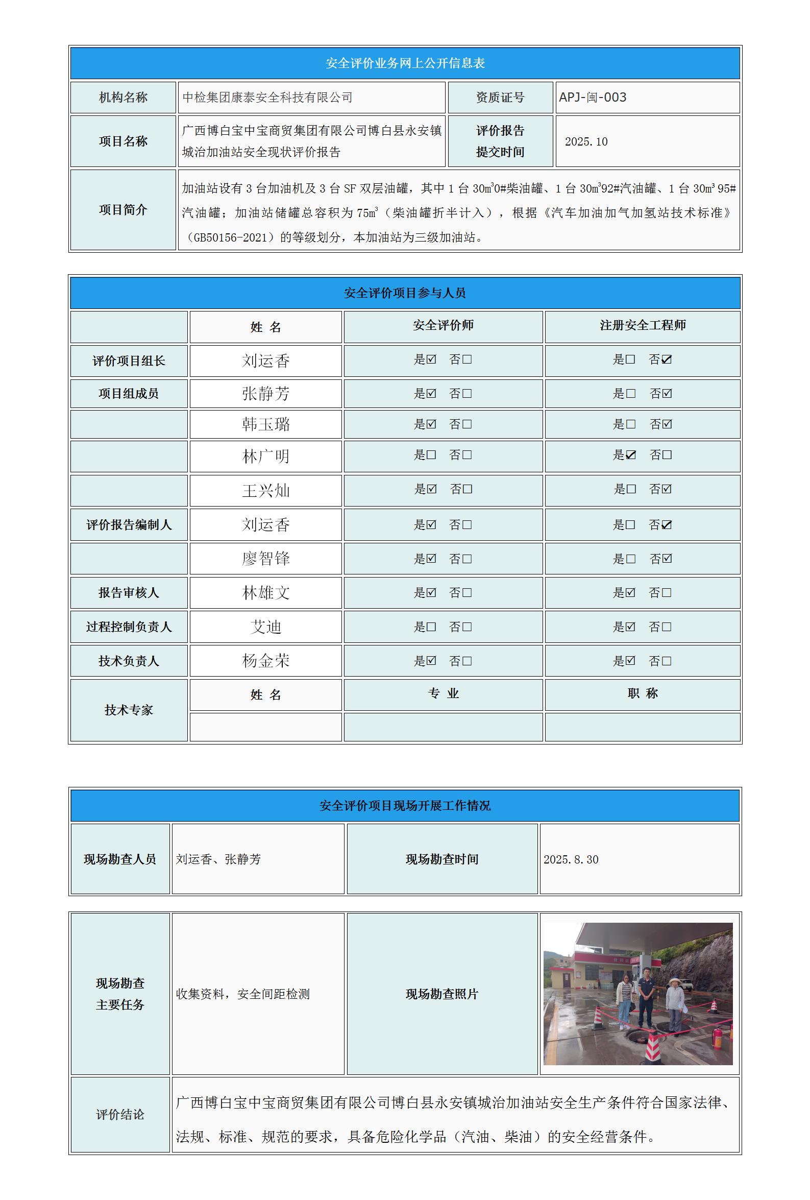 广西博白宝中宝商贸集团有限公司博白县永安镇城治加油站安全现状评价报告