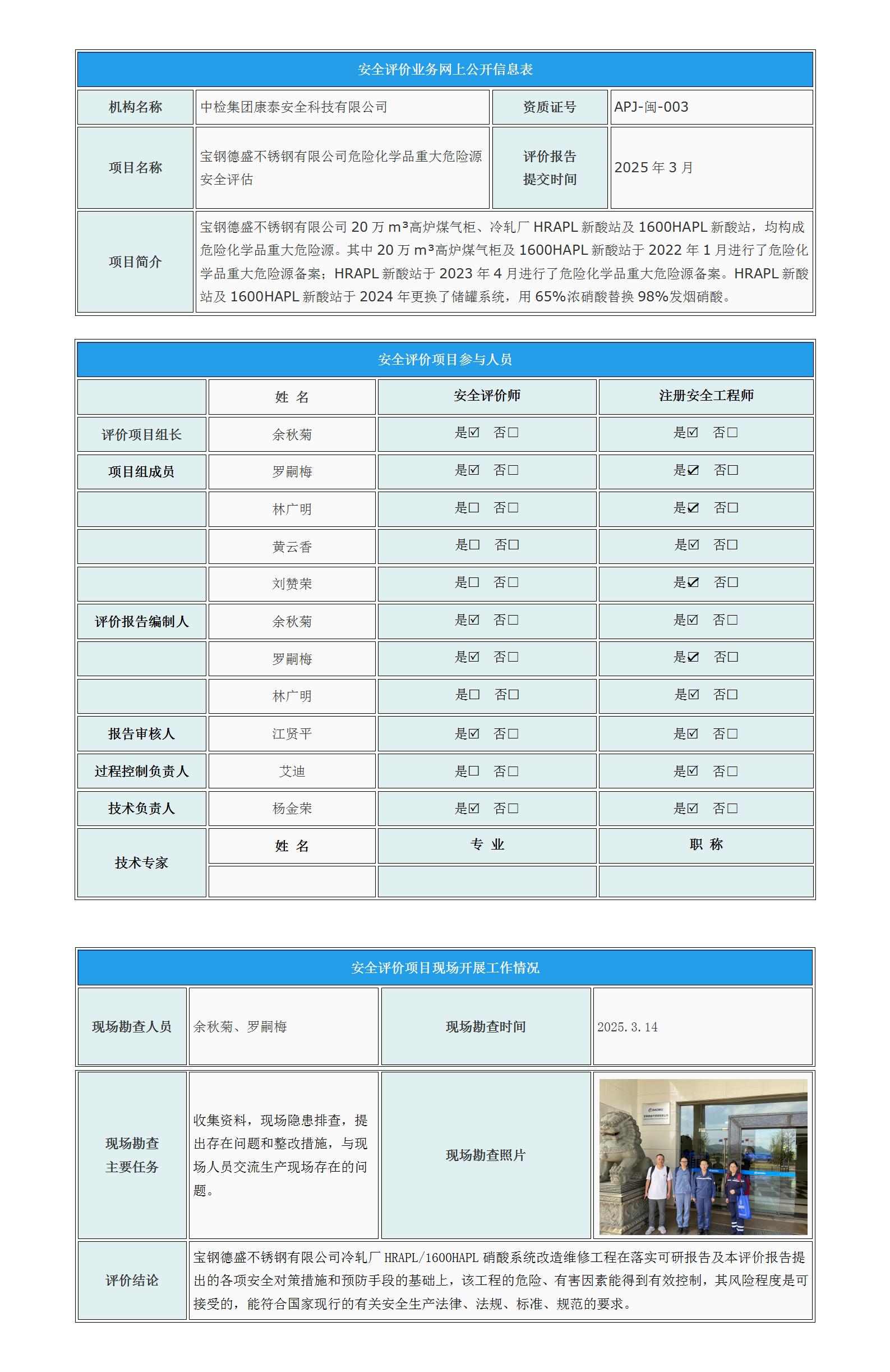 宝钢德盛不锈钢有限公司危险化学品重大危险源安全评估
