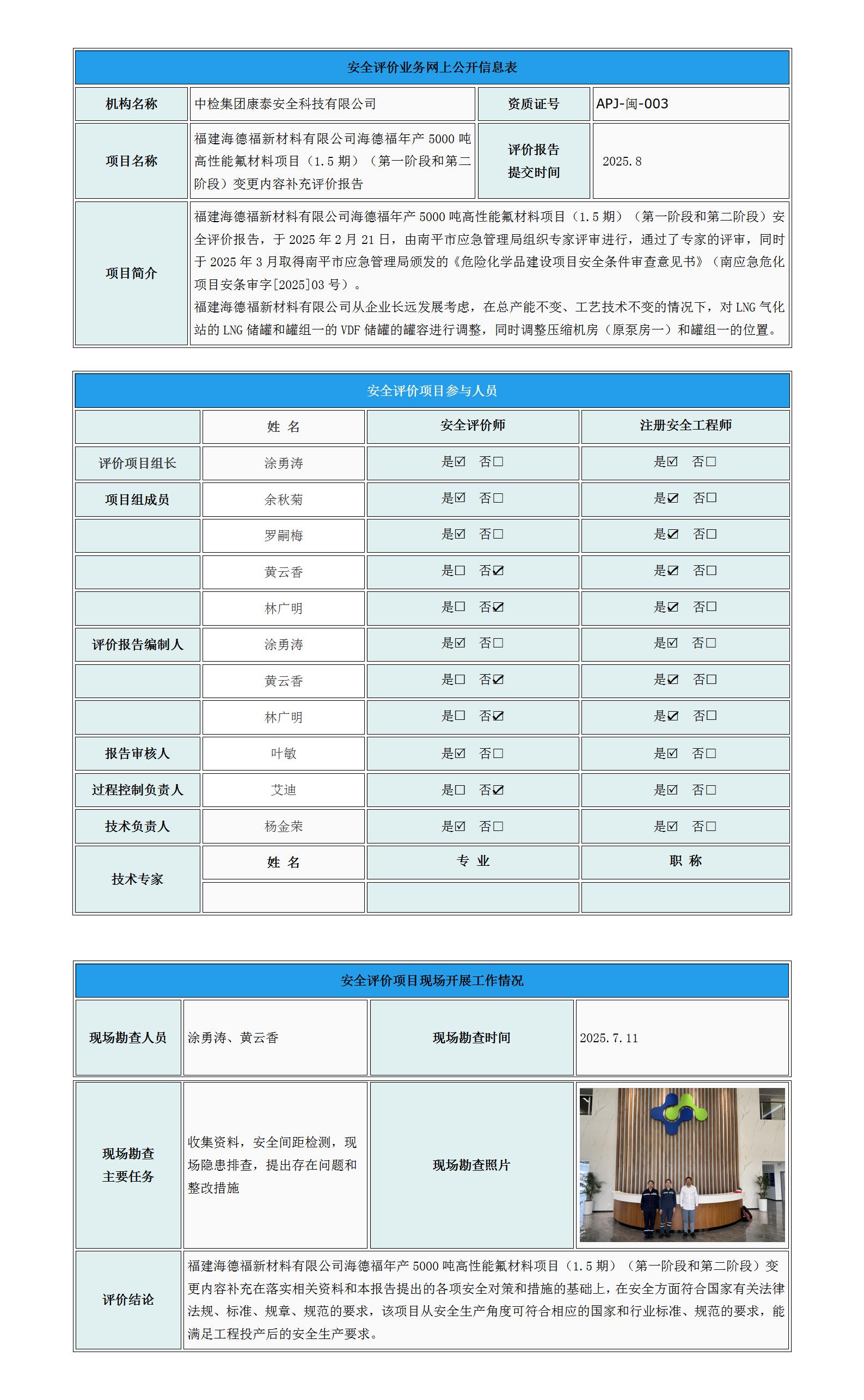 福建海德福新材料有限公司海德福年产5000吨高性能氟材料项目(1.5期)(第一阶段和第二阶段)变更内容补充评价报告