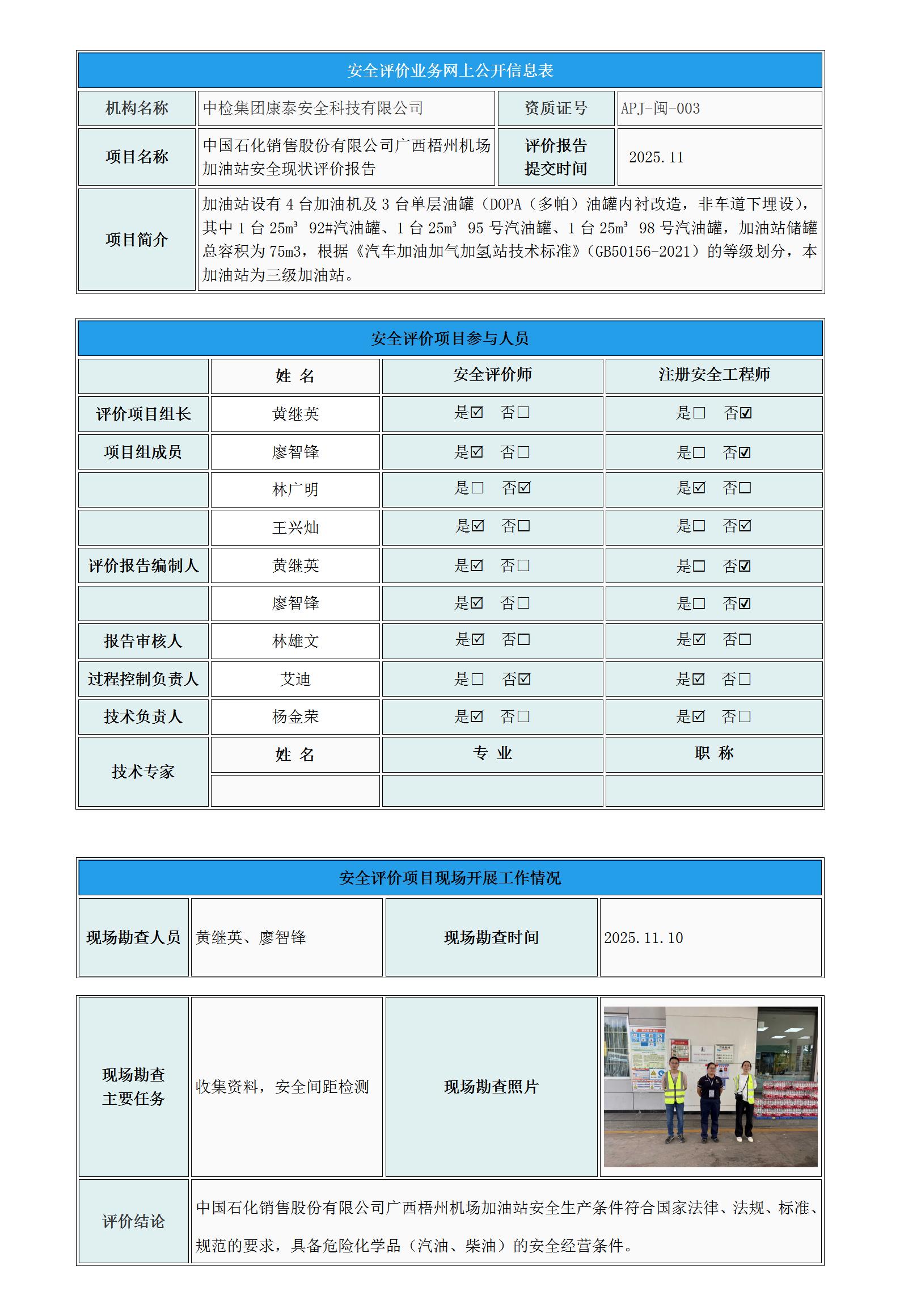 中国石化销售股份有限公司广西梧州机场加油站安全现状评价报告