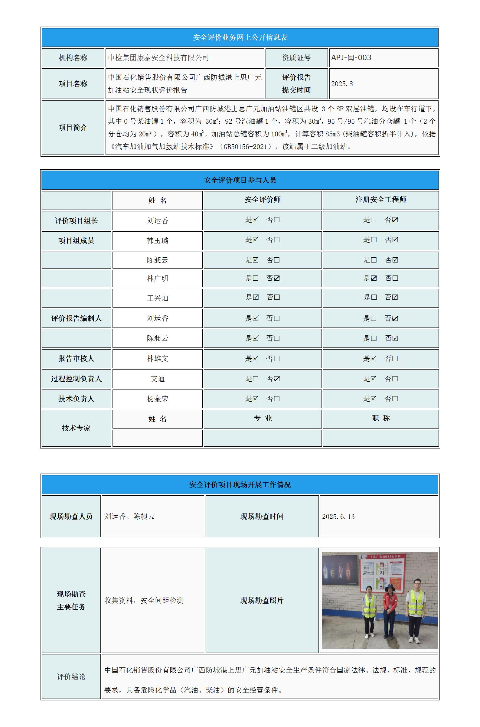中国石化销售股份有限公司广西贵港黄练加油站安全现状评价报告