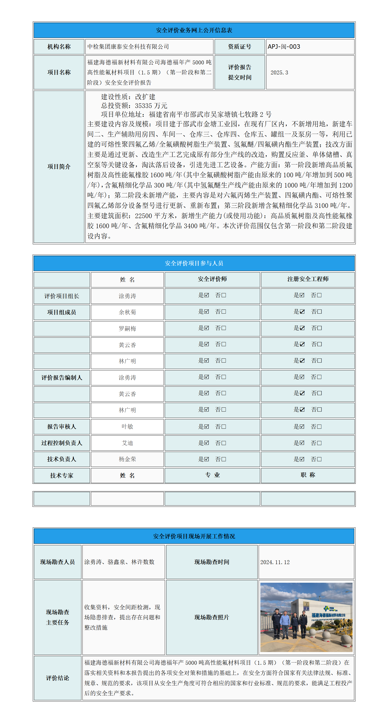 福建海德福新材料有限公司海德福年产5000吨高性能氟材料项目(1.5期)(第一阶段和第二阶段)安全安全评价报告