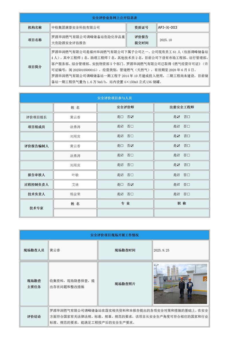 罗源华润燃气有限公司调峰储备站危险化学品重大危险源安全评估报告