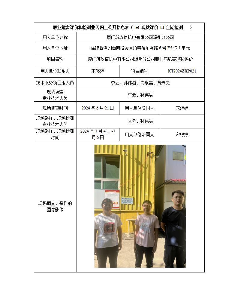 厦门筑玖信机电有限公司漳州分公司职业病危害现状评价