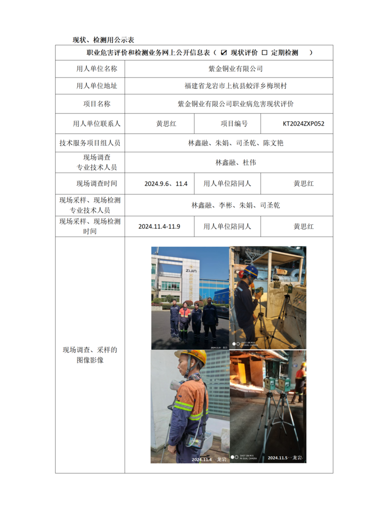 紫金铜业有限公司职业病危害现状评价